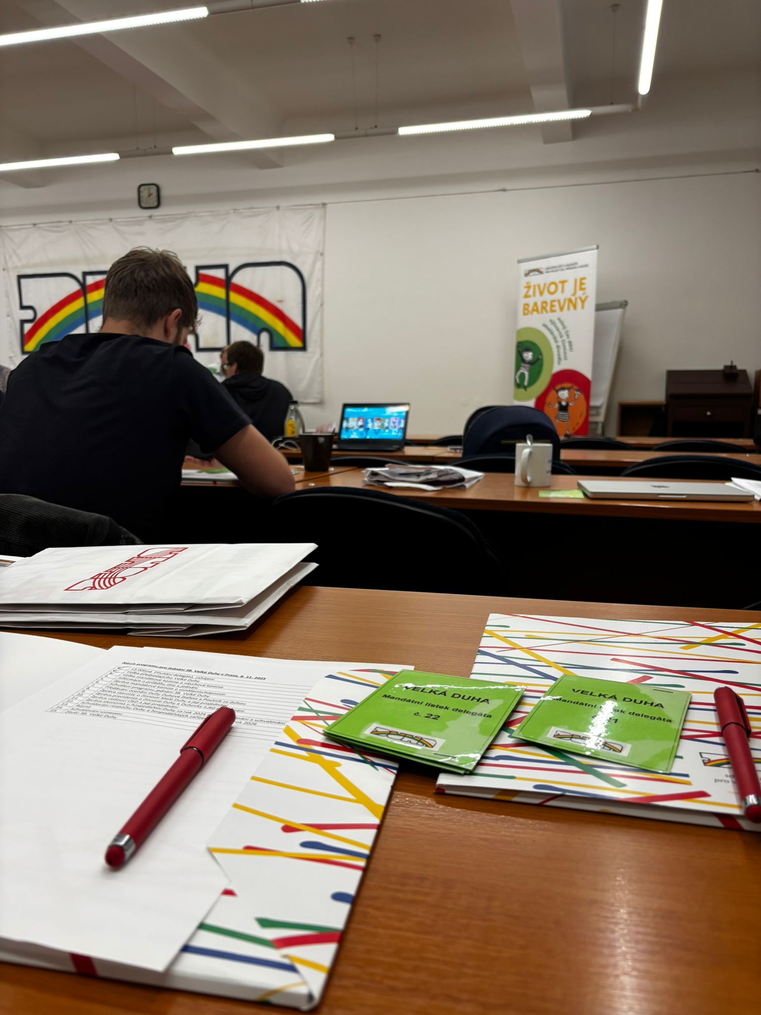 Rok utekl jako voda a opět nastal čas zúčastnit se zasedání všech dužin v rámci Velké Duhy. Jediného valného zasedání, které je konáno jednou ročně a na kterém by měly být přítomny všechny dužiny. Program Velké Duhy 2025 byl odlišný od toho loňského. Oproti loňsku nebyl volební rok, tedy debata nebyla tak dlouhá a vyhrocená. I tak delegáti museli schválit účetní uzávěrku za rok 2024 nebo rozpočet na rok 2026 a poslechnout si výroční zprávy prezidenta Duhy, starosty Malé duhy a vedoucí kanceláře. Za naši dužinu se zasedání opět zúčastnil David Kaliba a Adéla Valíčková.